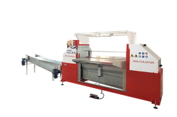 The machine takes each piece of wood automatically, and by demand, via a trolley, while the trolley moves towards the nail guns, these join the pieces of wood together using a nail coil. Incorpora sensores en los cargadores para detener la máquina en el caso de quedar sin madera.